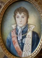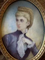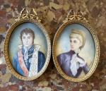 J. BOULE SABLE Portraits d'homme et de femme Paire de miniatures ovales, signées, dans des cadres en bronze doré 8.5 x 6 cm à vue