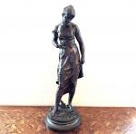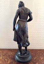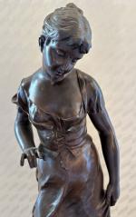 Émile CARLIER (1849-1927) Candeur ou Jeune femme à la libellule Bronze patiné, signé H.: 77 cm