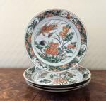 CHINE Compagnie des Indes Suite de quatre plats ronds en porcelaine à décor famille verte Epoque Kangxi D.: 24 cm