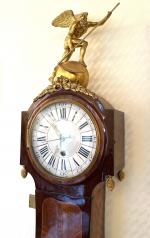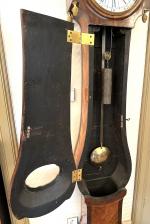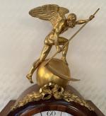 REGULATEUR DE PARQUET en placage et marqueterie de bois de rose et amarante, ornementation de bronze doré, le cadran émaillé surmonté d'une représentation de Chronos fauchant le temps, estampillé F.GOYER et poinçon de jurande JME