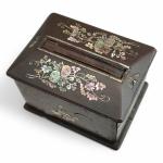 VIETNAM Boite couverte en bois burgauté de nacre 7.5 x 11.5 x 8.5 cm (petits accidents)