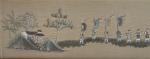 ASIE Broderie à décor d'une procession avec personnages 26.5 x 145.5 cm à vue