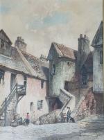 Gustave Adolphe SIMONAU [belge] (1810-1870) Cour de ferme Aquarelle signée en bas à droite 56.5 x 42 cm à vue