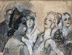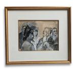 Paul Charles BRIAUDEAU (1869-1944) Elégantes, 1940. Encre et gouache monogrammée et datée en haut à droite 14.7 x 19.5 cm à vue