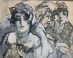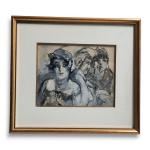 Paul Charles BRIAUDEAU (1869-1944) Elégantes, 1940. Encre et gouache monogrammée et datée en haut à gauche 15.2 x 19.5 cm à vue