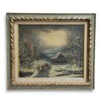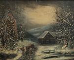 ECOLE FRANCAISE du XXème Paysage enneigé Huile sur toile 38 x 46 cm (manques)