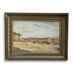 ECOLE FRANCAISE début XXème Paysage au bord de la rivière près du pont Huile sur toile 38 x 55 cm