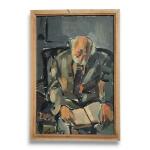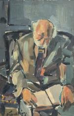 ECOLE FRANCAISE des années 1950 L'homme à la lecture Huile sur carton signée en bas à gauche 61.5 x 41 cm