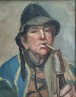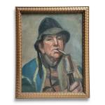 ECOLE FRANCAISE du XXème Portrait d'homme à la pipe Huile 45 x 35 cm à vue