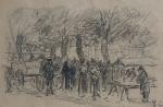 ECOLE FRANCAISE du XXème Scène de marché Dessin monogrammé EL en bas à droite 15.5 x 23.5 cm à vue
