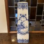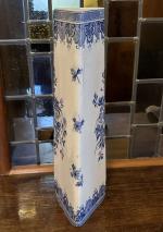 DELFT Vase de forme triangulaire en faïence à décor bleu blanc H.: 36 cm