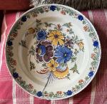DELFT PLAT rond en faïence à décor polychrome de fleurs XIXème D.: 35 cm (sauts d'émail)