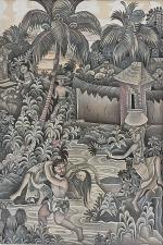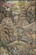 I Wayan KABETAN [indonésien] (1931-2006) Scènes animées Quatre aquarelles 30 x 20 cm à vue (insolées)
