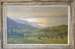 Henri HISSARD (XXème) Vue d'un lac Huile sur toile signée en bas à droite 73 x 117 cm Provenance: - Vente, Nantes, Couton Veyrac Jamault, 27 septembre 2016, n° 104