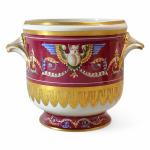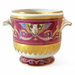LE TALLEC à Paris Cache pot rond en porcelaine à décor polychrome et or H.: 17.8 cm