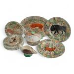 GIEN Modèle Rambouillet Partie de service de table en faïence comprenant une saucière, deux plats ronds, un plat ovale, une terrine couverte et neuf assiettes plates