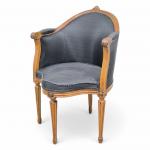 FAUTEUIL DE BUREAU en acajou sculpté et mouluré reposant sur cinq pieds cannelés, porte une estampille apocryphe E St GEORGES Epoque Louis XVI H.: 89 cm (l'extrémité des pieds refaite)