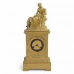 PENDULE borne en bronze doré surmonté d'une allégorie de la Fidélité avec une femme et son chien, le cadran signé "Gallonier et Foulon à Nantes" XIXème H.: 44 cm