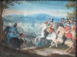 ECOLE FRANCAISE du XVIIIème La prise de la ville Gouache portant une signature "L. Touze" en bas au centre 17.5 x 22.5 cm à vue