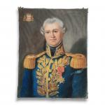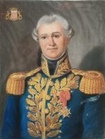 ECOLE FRANCAISE du XIXème Portrait du comte de Kerguelen Pastel sur papier transposé sur toile avec armoiries...