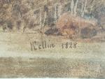 Nicolas Joseph KELLIN (1789-1858) Le vieux château dominant la mer, 1828. Aquarelle signée et datée en bas à droite 20 x 25 cm
