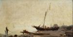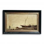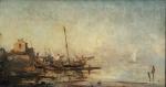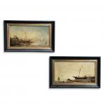 ECOLE MEDITERRANENNE du XIXème Bord de côte, 1872. Paire d'huiles sur toile signées et datées en bas à gauche 35.5 x 65.5 cm (rentoilage)