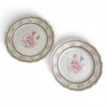 CHINE Compagnie des Indes Paire d'assiettes en porcelaine à décor famille rose de fleurs XVIIIème D.: 23.5 cm