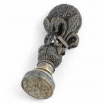 CACHET en bronze à décor de fleurs de lys enchâssant une sphère, la matrice vierge H.: 9.2 cm