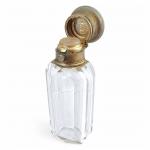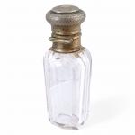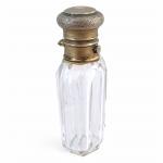 FLACON A SEL en cristal et vermeil, gravé d'armoirie à l'intérieur du couvercle XIXème H.: 10 cm (manque le bouchon intérieur)
