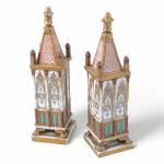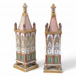PARIS Paire de flacons couverts en porcelaine à décor néogothique polychrome et or Epoque Romantique H.: 26.5 cm