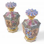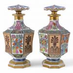 PARIS Paire de flacons couverts en porcelaine à décor polychrome et or XIXème H.: 17 cm