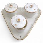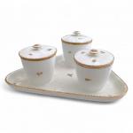 SERVICE A CONDIMENTS en porcelaine à décor or, comprenant trois pots couverts sur leur plateau adhérent XIXème H.: 8 cm