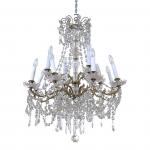 LUSTRE en bronze à douze bras de lumière à décor de pampilles H.: 90 cm D.: 70 cm