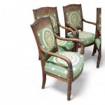 Suite de quatre FAUTEUILS en acajou sculpté et mouluré Epoque Empire
