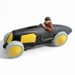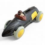 Manufacture HB à Quimper Tirelire en faïence figurant une voiture de courses des années 1920, marquée L.: 27 cm (infimes sauts d'émail)
