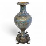INDOCHINE Vase en bronze cloisonné et émaux polychromes Fin XIXème H.: 52.5 cm (manque les deux anses)