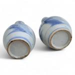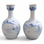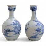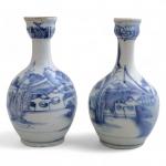 CHINE Paire de vases de forme bouteille en porcelaine à décor en camaïeu bleu H.: 20 cm (fêles à l'un)