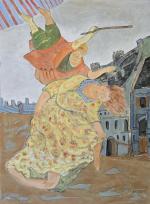 Ahmed HAJERI (né en 1948) L'enfant a plié Huile sur toile monogrammée, signée, titrée et datée en bas à droite 88 122 x 90 cm