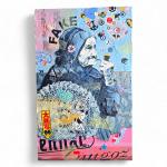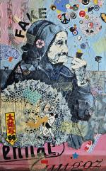 Ecole moderne La bretonne à la pipe Technique mixte sur panneau, signée au revers Fithomas 80 x 50 cm