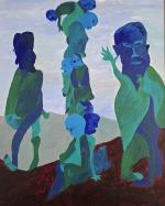 Geneviève ROUBAUD (1946-2024) Tristes et dos à dos Acrylique sur toile signée en bas à droite, titrée et datée 1992 au revers 98 x 80 cm