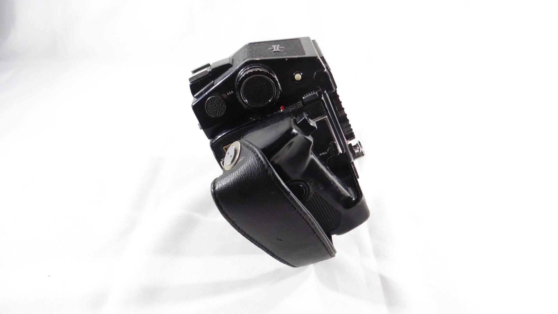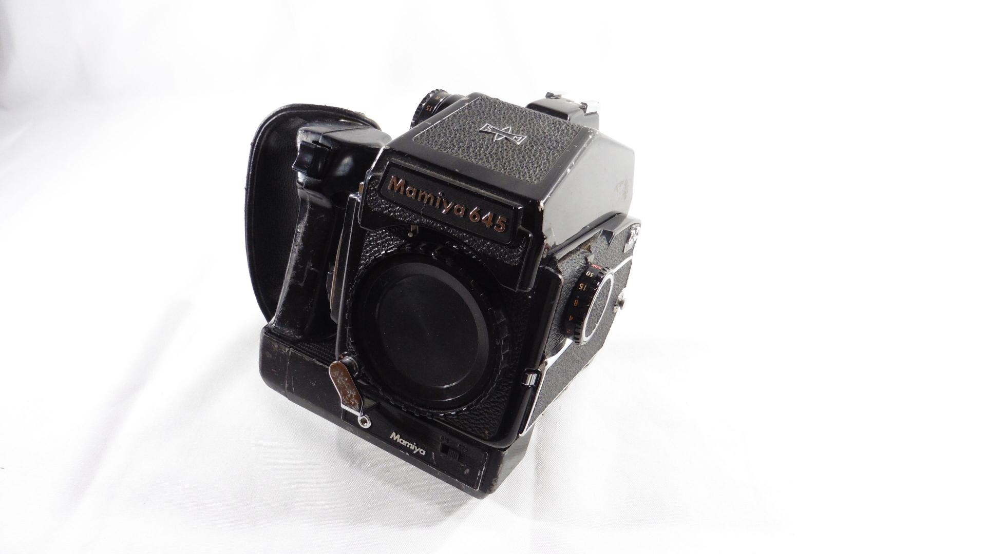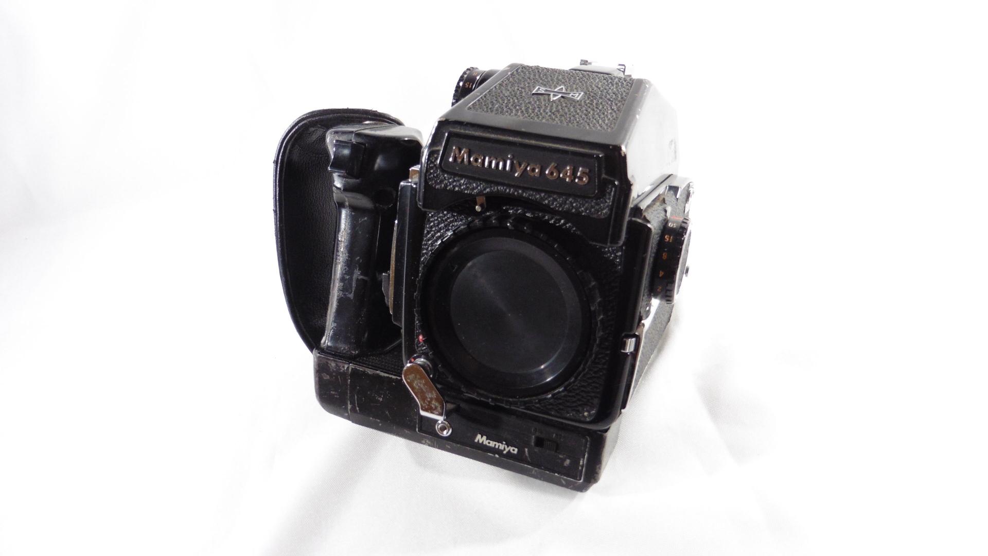 Mamiya 645, appareil photo moyen format 6x4,5 avec sa poignée.
