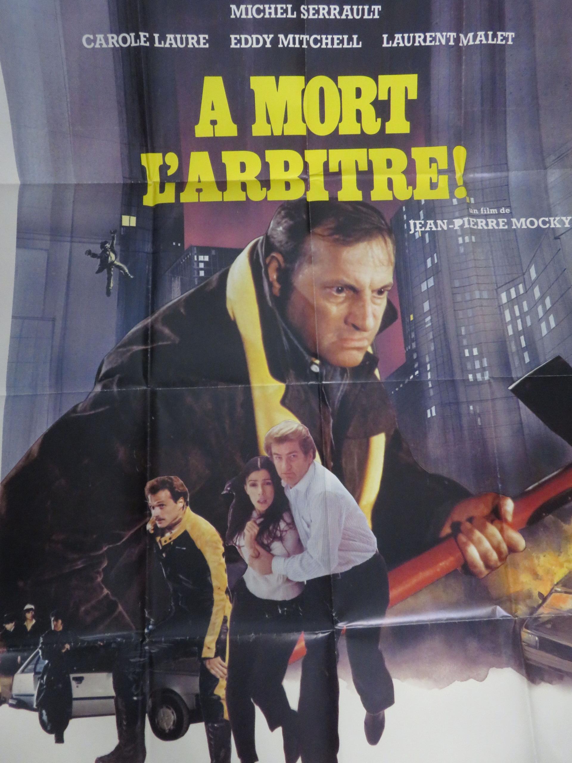 "A mort l'arbitre": (1984) de Jean-Pierre Mocky, avec Michel Serrault, Eddy Mitchell Affiche 1,20 x 1,60 - Illustrée par Jouineau Bourduge
