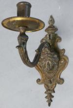 6 - Deux appliques en bronze à une branche soutenue par un mascaron féminin, style Régence (traces de dorure à l'une)