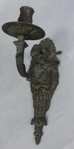 7 - Applique à une branche de style Louis XVI en bronze patiné à tête et dépouille de lion, profil féminin, etc... Haut. : 26 cm