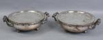 15 - Paire de chauffe-plats ronds en cuivre argenté, anses feuillagées, ép. Napoléon III