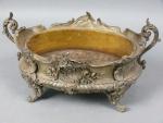 17 - Jardinière ovale sur quatre pieds en régule à décor de style rocaille. Long. : 44 cm
