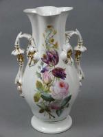 75 - Grand vase balustre à col quadrilobé en porcelaine à décor polychrome peint de fleurs, anses avec dorure (usures), époque Napoléon III. Haut. : 50 cm