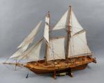 92 - Maquette moderne en bois de la goélette américaine ''Harvey'' 1847, fabriquée par Historic Marine. Haut. : 69 cm - Long. : 93 cm