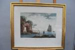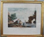 d'après Joseph VERNET gravé par LE GOUAZ "Le choix du poisson" et "Les pecheurs fortunés" Paire de gravures polychromes 30 x 43 cm