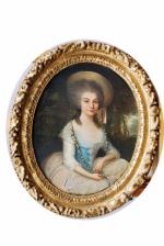 ECOLE FRANCAISE XVIIIème siècle Portrait d'une jeune femme au chapeau Huile sur toile ovale rentoilée, cadre bois doré 40 x 32 cm